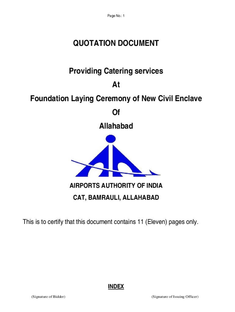 Page No.: 1QUOTATION DOCUMENT Providing Catering services At Foundation Laying Ceremony of New Civil Enclave Of AllahabadAIRPORTS AUTHORITY OF INDIA CAT, BARNAUL, ALLAHABAD This is to certify that