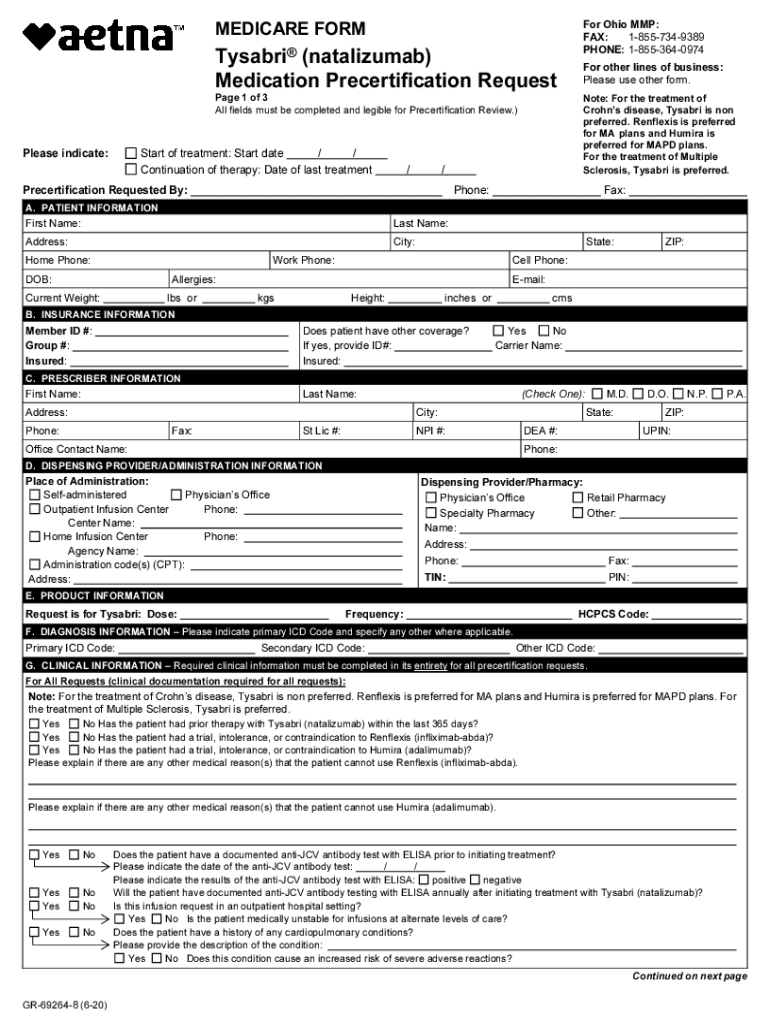 MEDICARE FORMTysabri () Medication Recertification Request Page 1 of 3 All fields must be completed and legible for Recertification Review.) Please indicate:Start of treatment: Start date / / Continuation