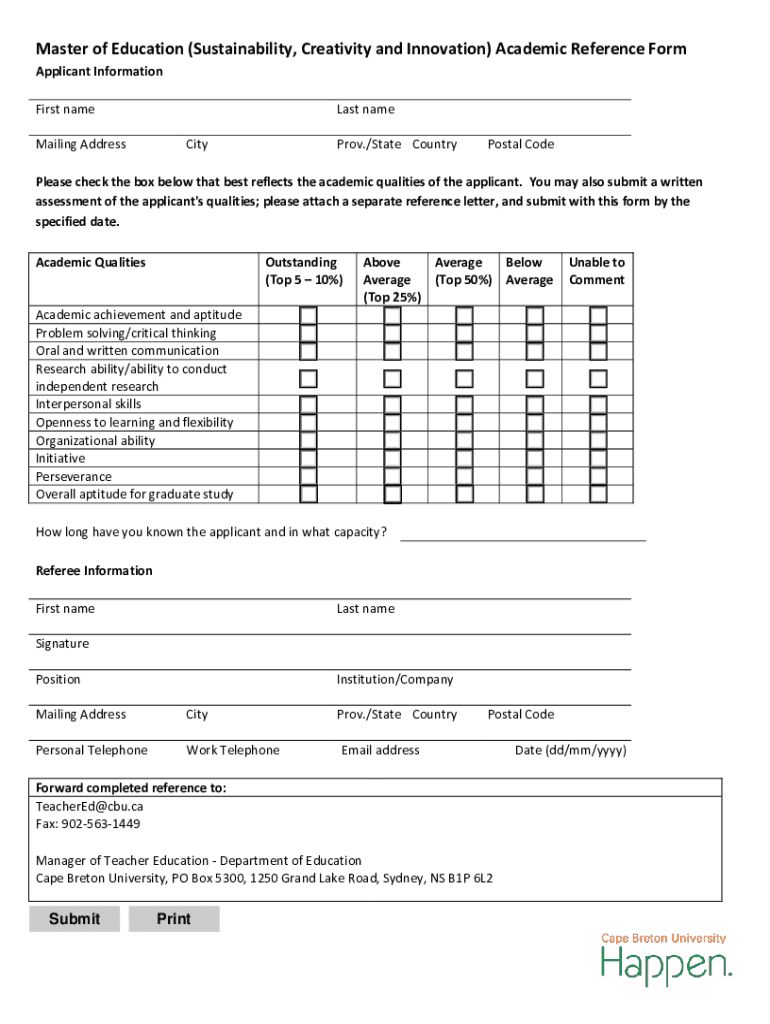 Master of Education (Sustainability, Creativity and Innovation) Academic Reference Form