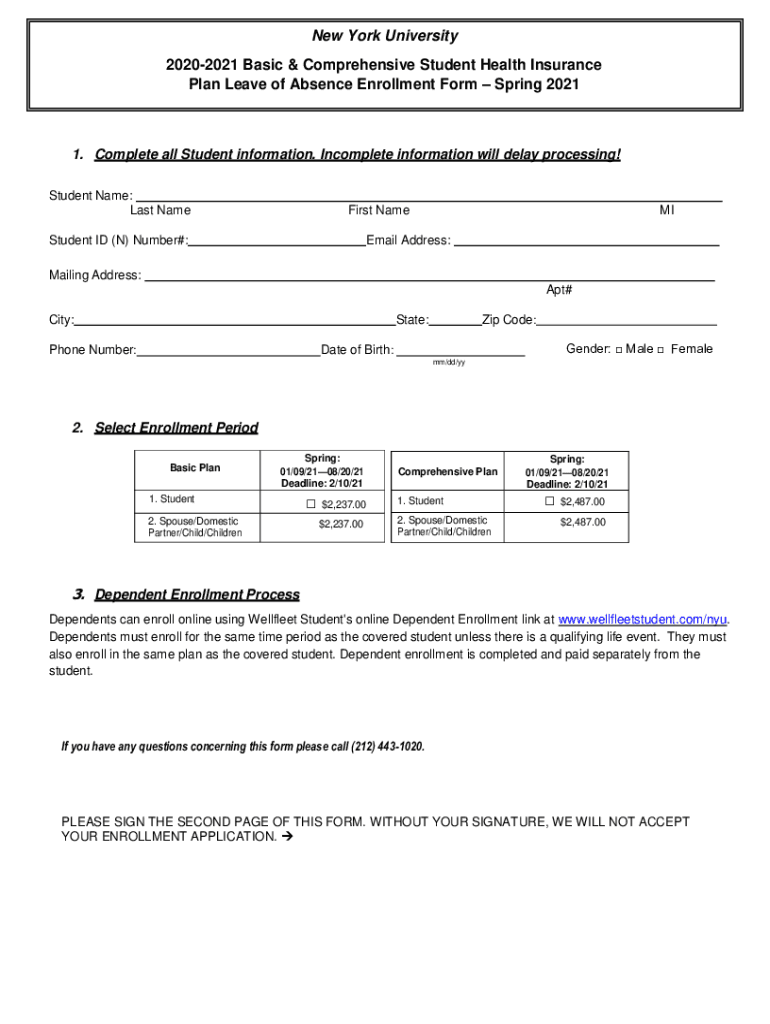 Plan Leave of Absence Enrollment Form Spring 20211. Complete all Student information. Incomplete information will delay