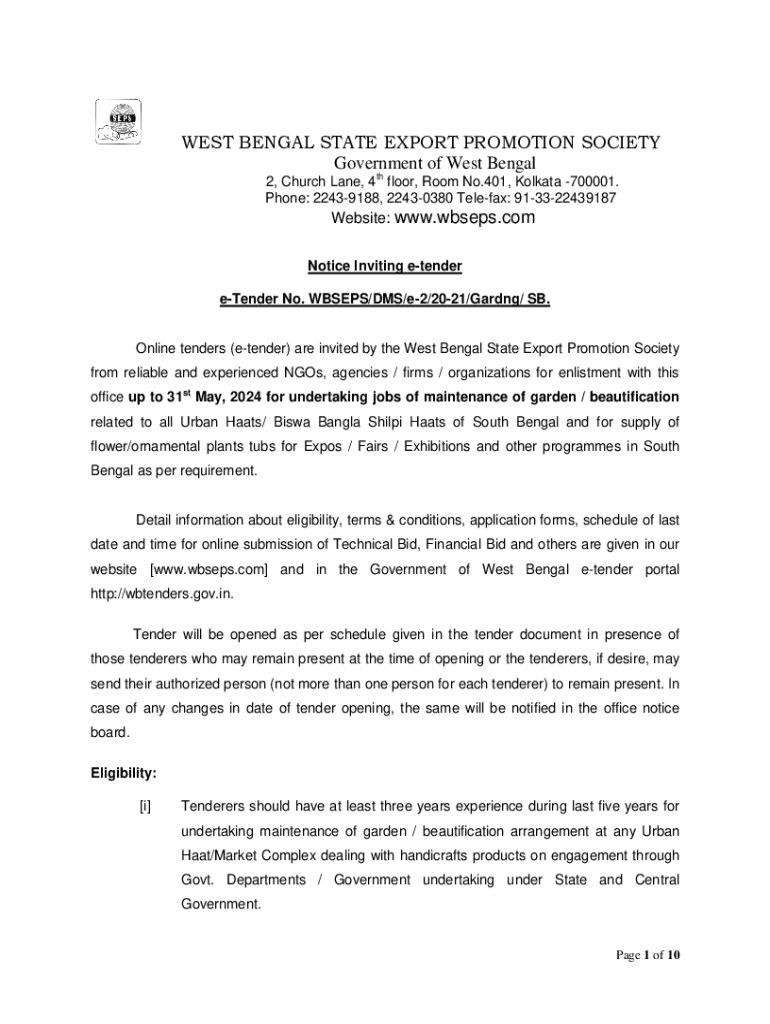 Get the free Notice Inviting e-tender. e-tender No. WBSEPS/DMS/e-3/20-21/SC