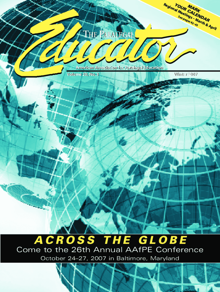 THE PARALEGAL American Association for Paralegal Education Volume 20, No. 3Reg YO ion U M all M R C ARK get ALE N See kings M DAR pages 42 arch 43 A PRI winter 2007ACROSS THE GLOBE Come to the 26th