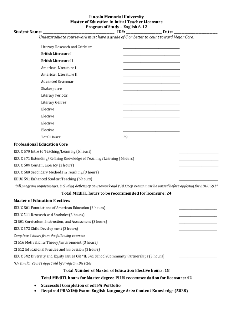 Get the free Lincoln Memorial UniversityTeacher PreparationTN EPP