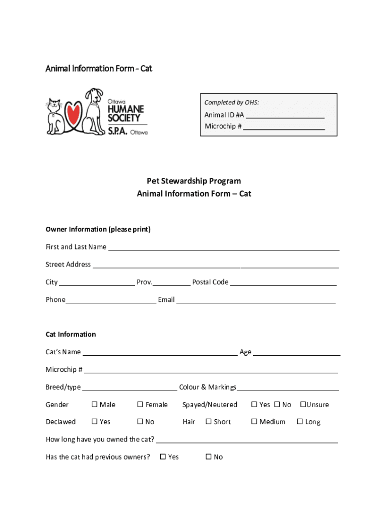 Animal Information Form Completed by OHS:Animal ID #A