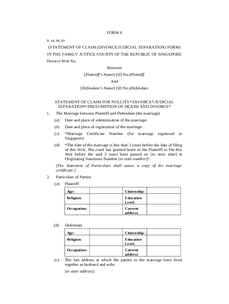 Template Statement of Claim Divorce ( 6) DOC, 29 KB instructions