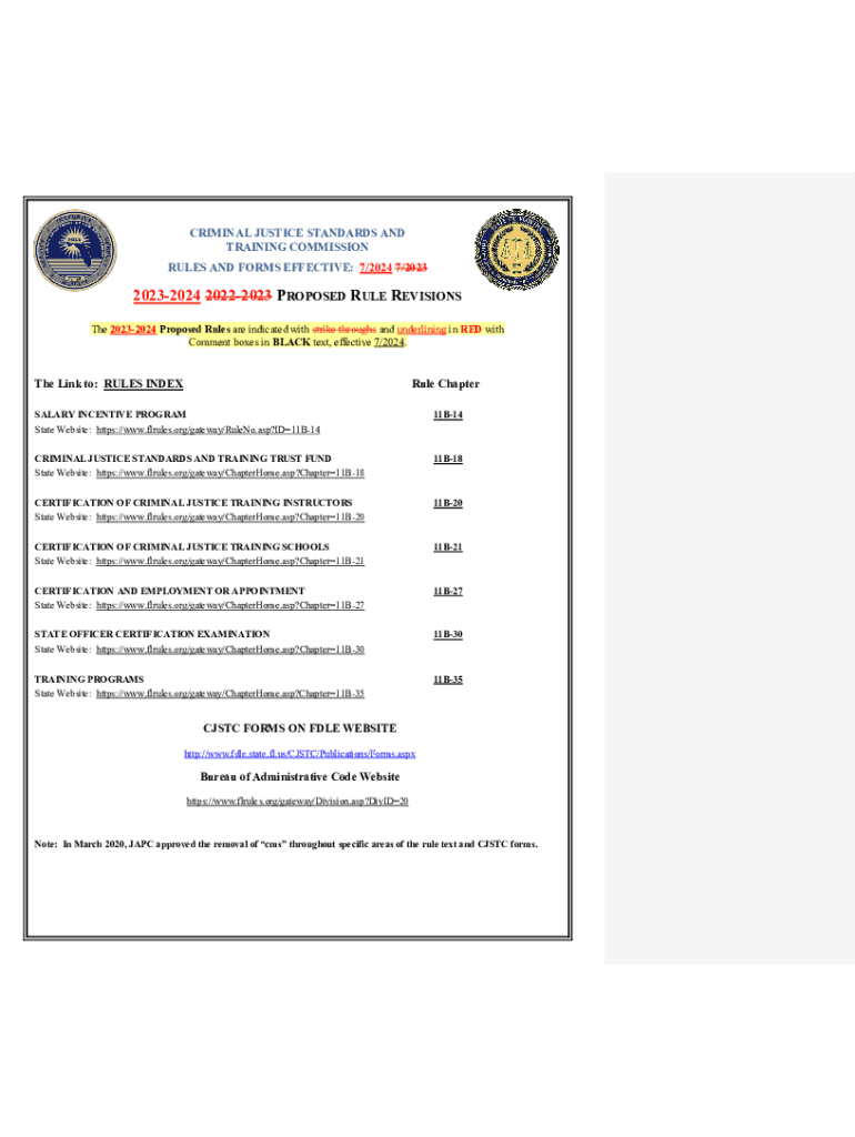 RULES AND FORMS EFFECTIVE: 7/2024 7/202320232024 20222023 PROPOSED RULE REVISIONS