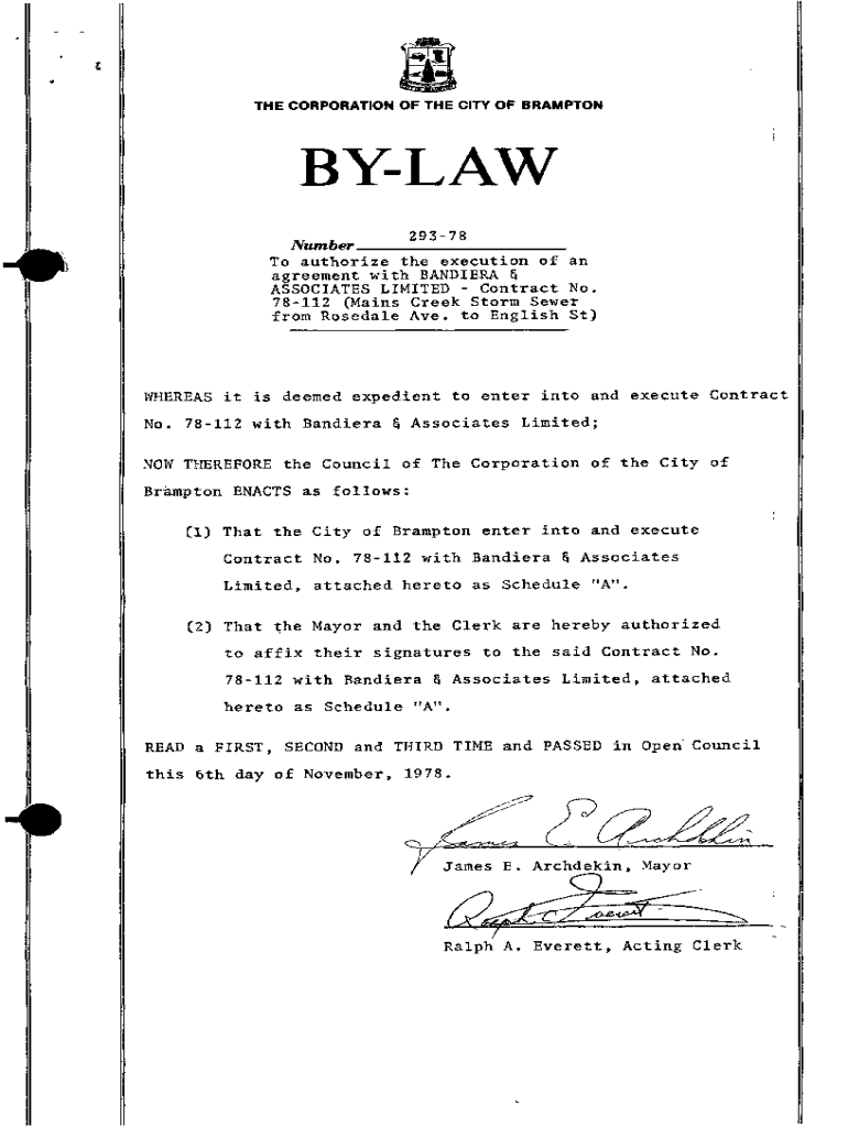 Get the free 293-78. agreement BANDIERA & ASSOCIATES LIMITED Contract No. 78-112 Mains Cr...