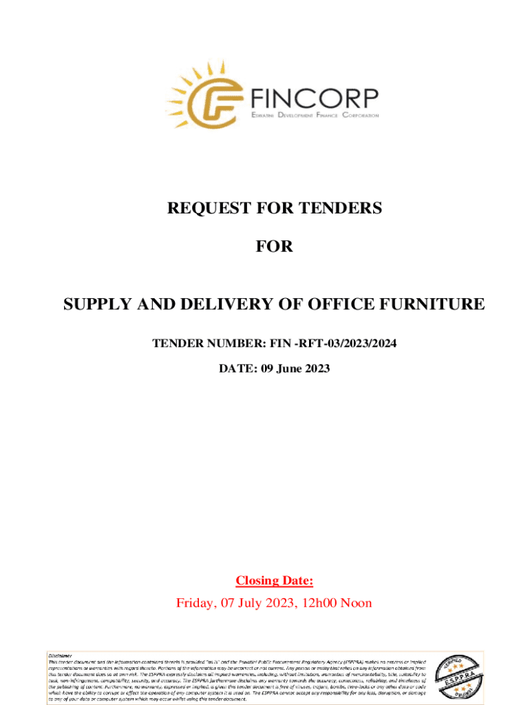 TENDER NUMBER: FIN RFT03/2023/2024