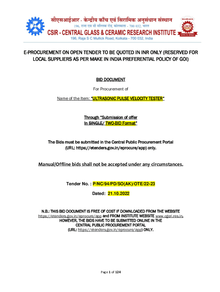 LOCAL SUPPLIERS AS PER MAKE IN INDIA PREFERENTIAL POLICY OF GOI)BID DOCUMENT