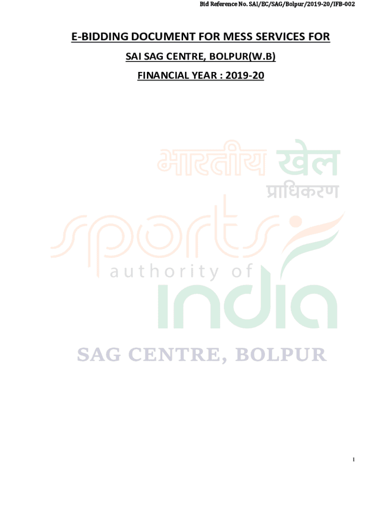 Bid Reference No. SAI/EC/SAG/Blur/201920/IFB002EBIDDING DOCUMENT FOR MESS SERVICES FOR