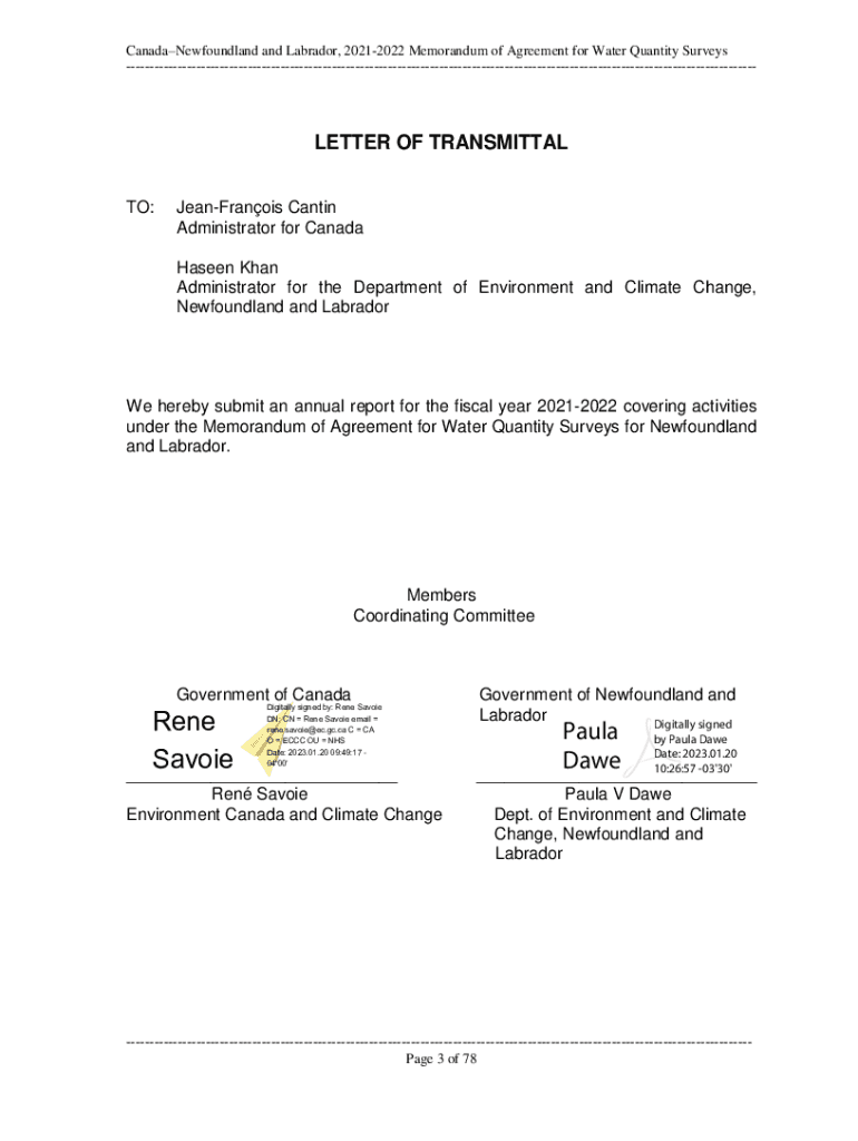 20212022CanadaNewfoundland and Labrador, 20212022 Memoranda of Agreement for Water Quantity