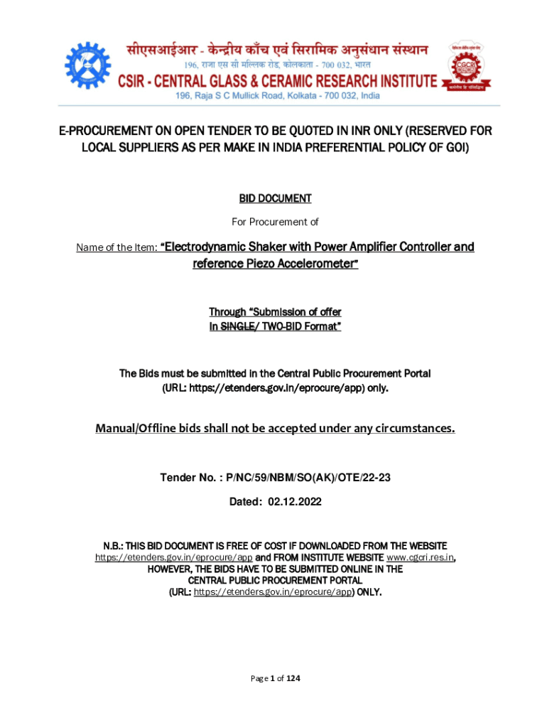 PROCUREMENT ON OPEN TENDER TO BE QUOTED IN INR ONLY (RESERVED FOR LOCAL SUPPLIERS AS PER MAKE IN INDIA PREFERENTIAL POLICY OF GOI)BID DOCUMENT For Procurement of Name of the Item: Electrodynamics