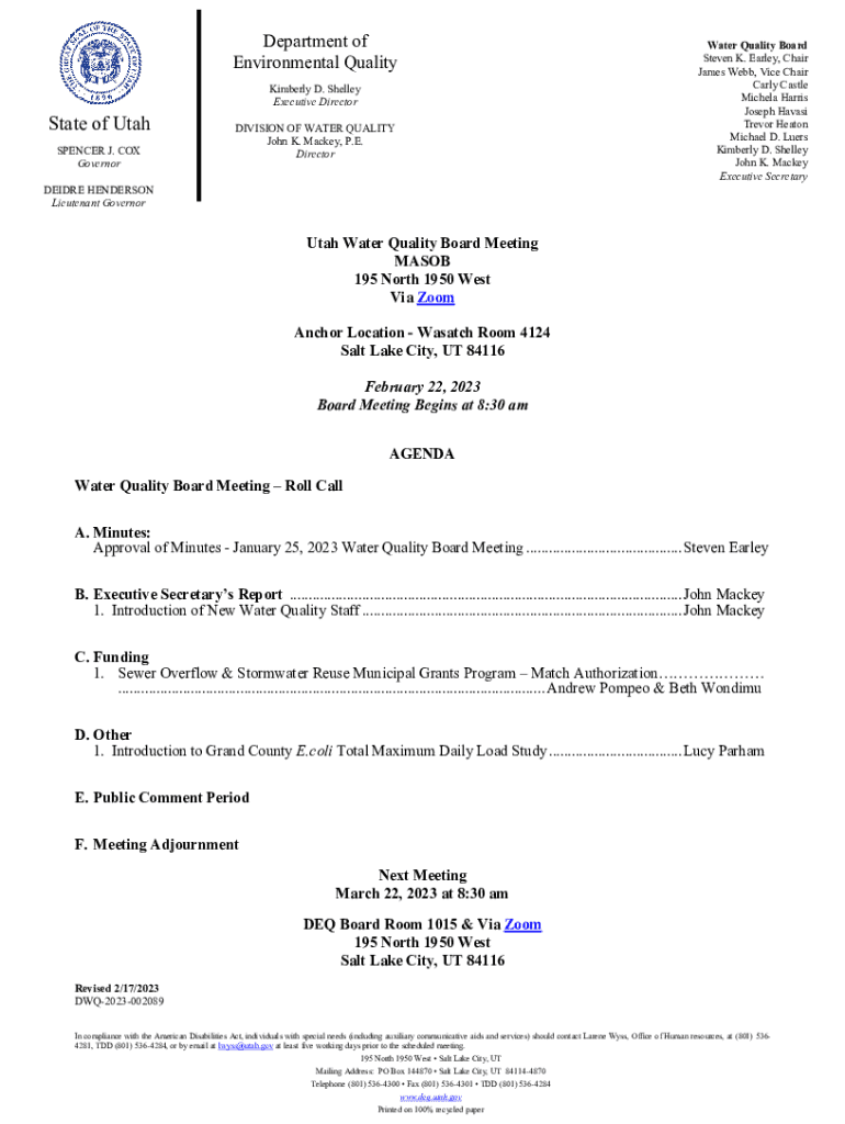 Department of Environmental Quality Kimberly D. Shelley Executive Directorate of Utah SPENCER J. COX GovernorDIVISION OF WATER QUALITY John K. Mickey, P.E. DirectorDEIDRE HENDERSON Lieutenant Governorate