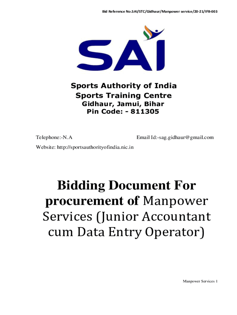 Bid Reference No.SAI/STC/Gidhaur/Manpower service/2021/IFB003Sports Authority of India