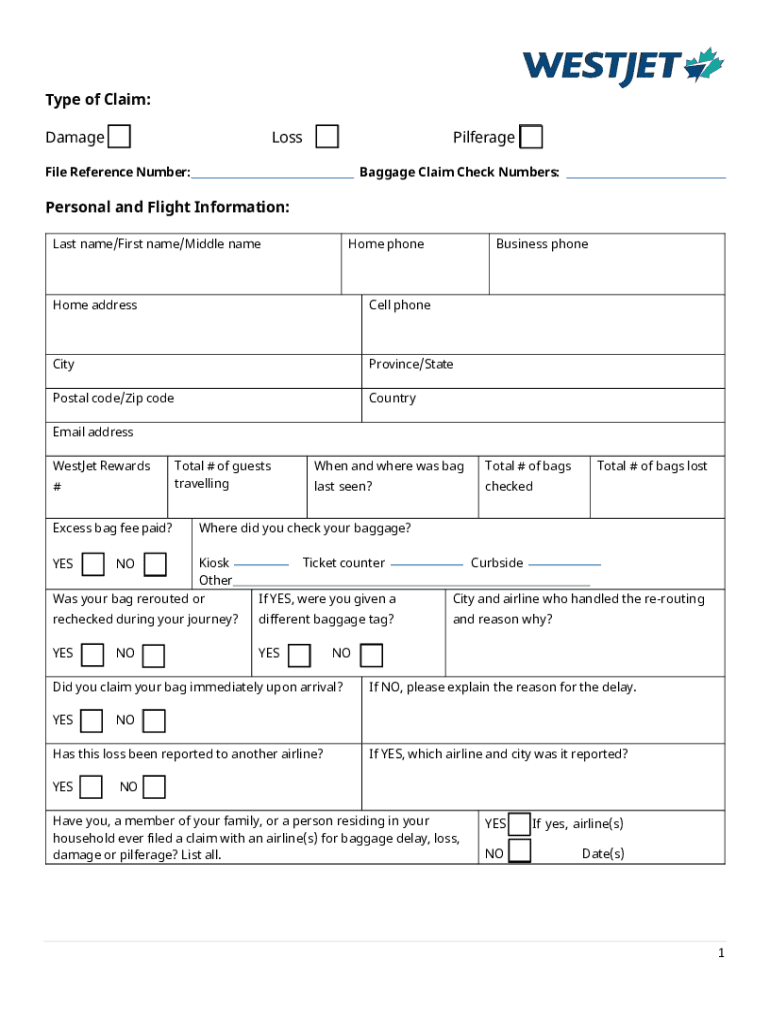 DamageLossPilferageFile Reference Number:Baggage Claim Check Numbers:Personal and Flight Information: