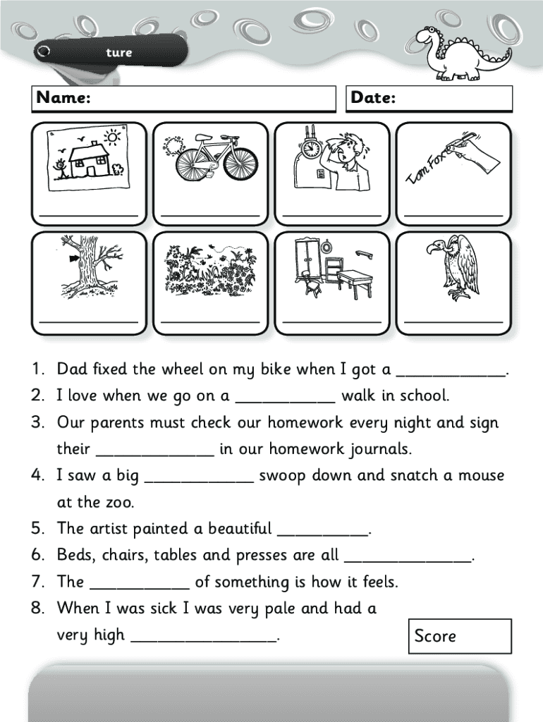 Surname:Date:1. Dad fixed the wheel on my bike when I got a ___. 2. I love when we go on a ___ walk in school. 3. Our parents must check our homework every night and sign their ___ in our homework