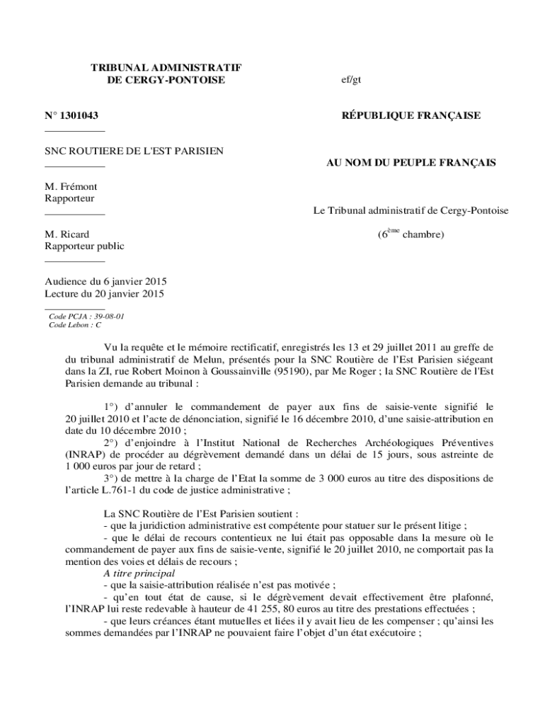 Obtenir le gratuit SNC ROUTIERE DE L'EST PARISIENM. ...