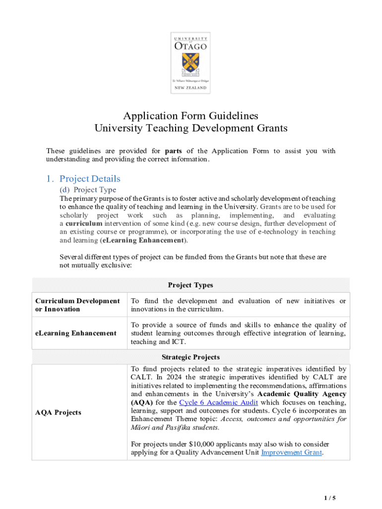 Application Form Guidelines University Teaching Development Grants These guidelines are provided for parts of the Application Form to assist you with understanding and providing the correct information.1.