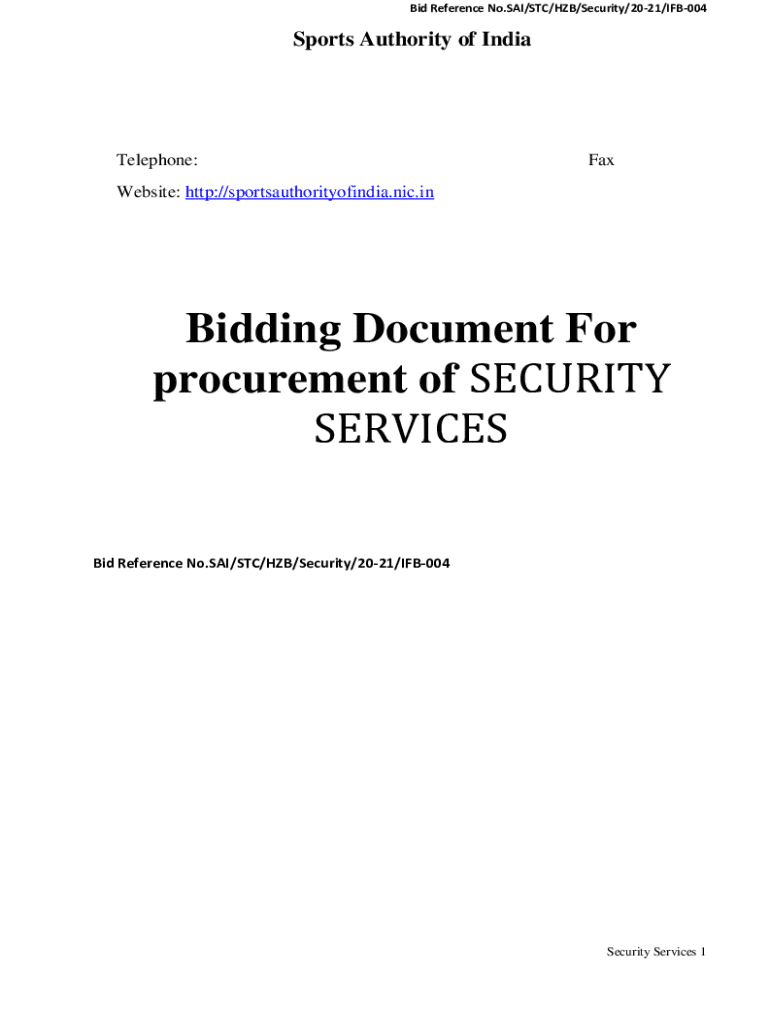 Bid Reference No.SAI/STC/HZB/Security/2021/IFB004Sports Authority of Radiotelephone:Website: http://sportsauthorityofindia.nic.inBidding Document For procurement of SECURITY SERVICES Bid Reference