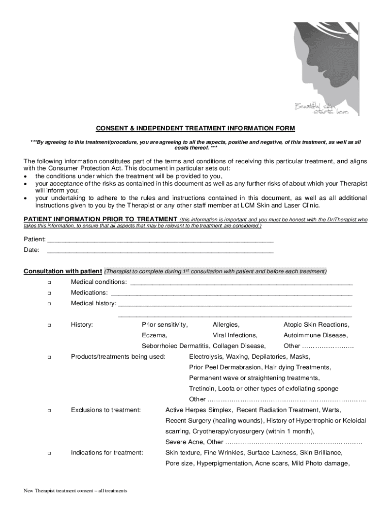 CONSENT & INDEPENDENT TREATMENT INFORMATION FORM ***By agreeing to this treatment/procedure, you are agreeing to all the aspects, positive and negative, of this treatment, as well as all costs thereof.