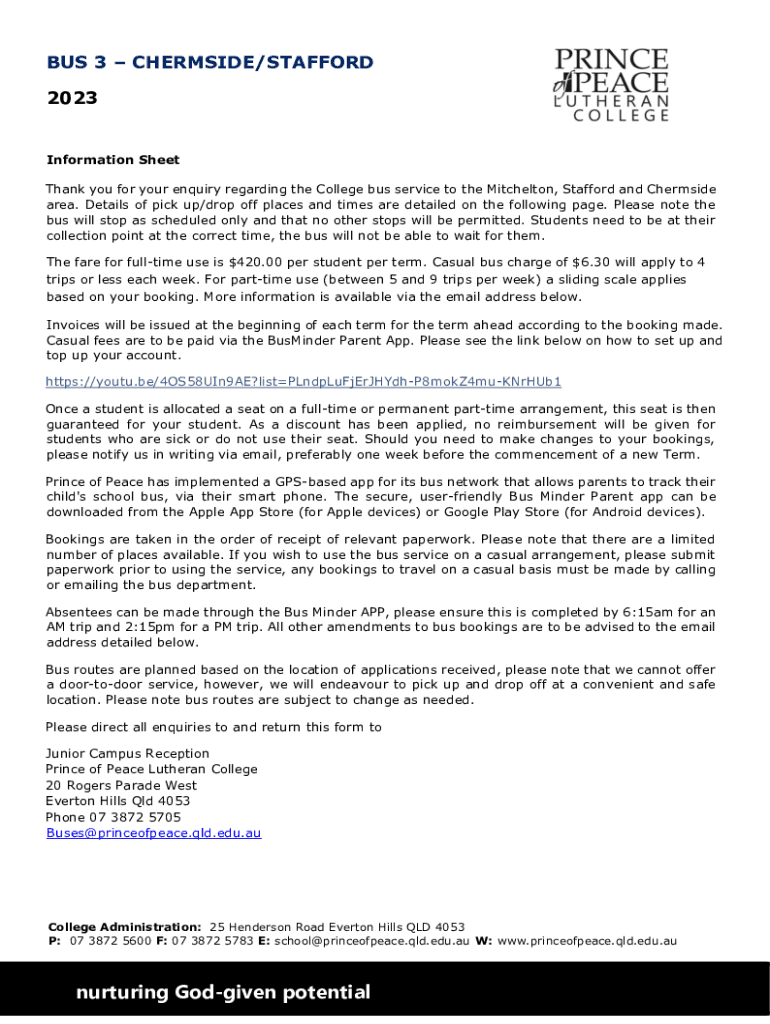 Thank you for your inquiry regarding the College bus service to the Mitchel ton, Stafford and Cherished