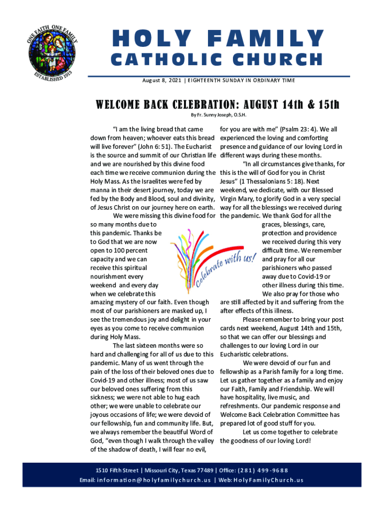 Get the free Category: - Important News and Events - Holy Family Church