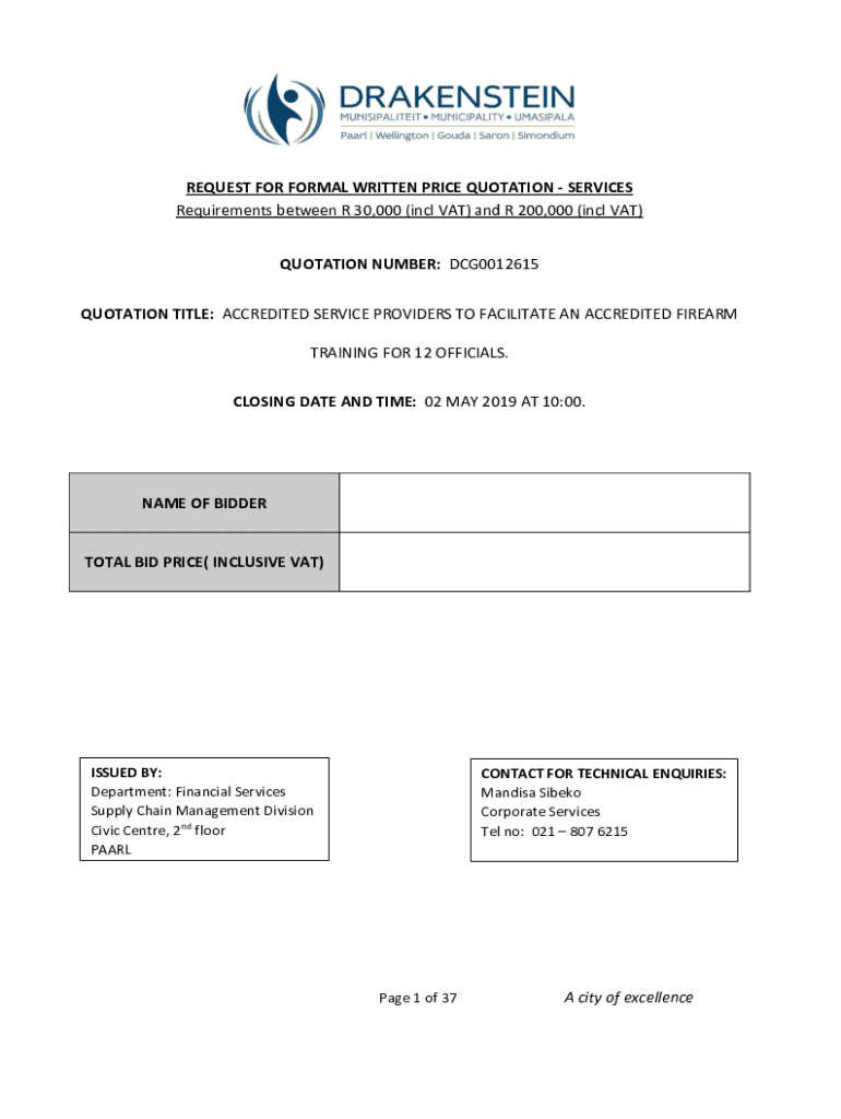 Requirements between R 30,000 (incl VAT) and R 200,000 (incl VAT)