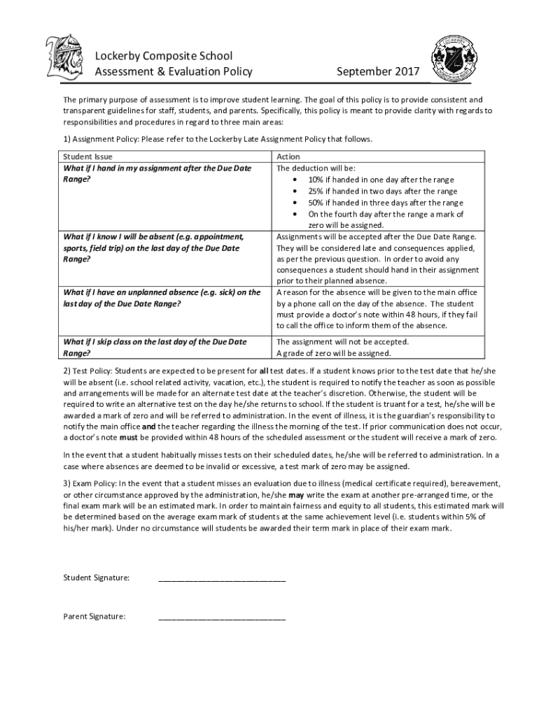 Locker by Composite SchoolAssessment & Evaluation Policy September 2017The primary purpose of assessment is to improve student learning. The goal of this policy is to provide consistent and transparent guidelines for staff, students, and parents. Specifically, this policy is meant to provide clarity in
