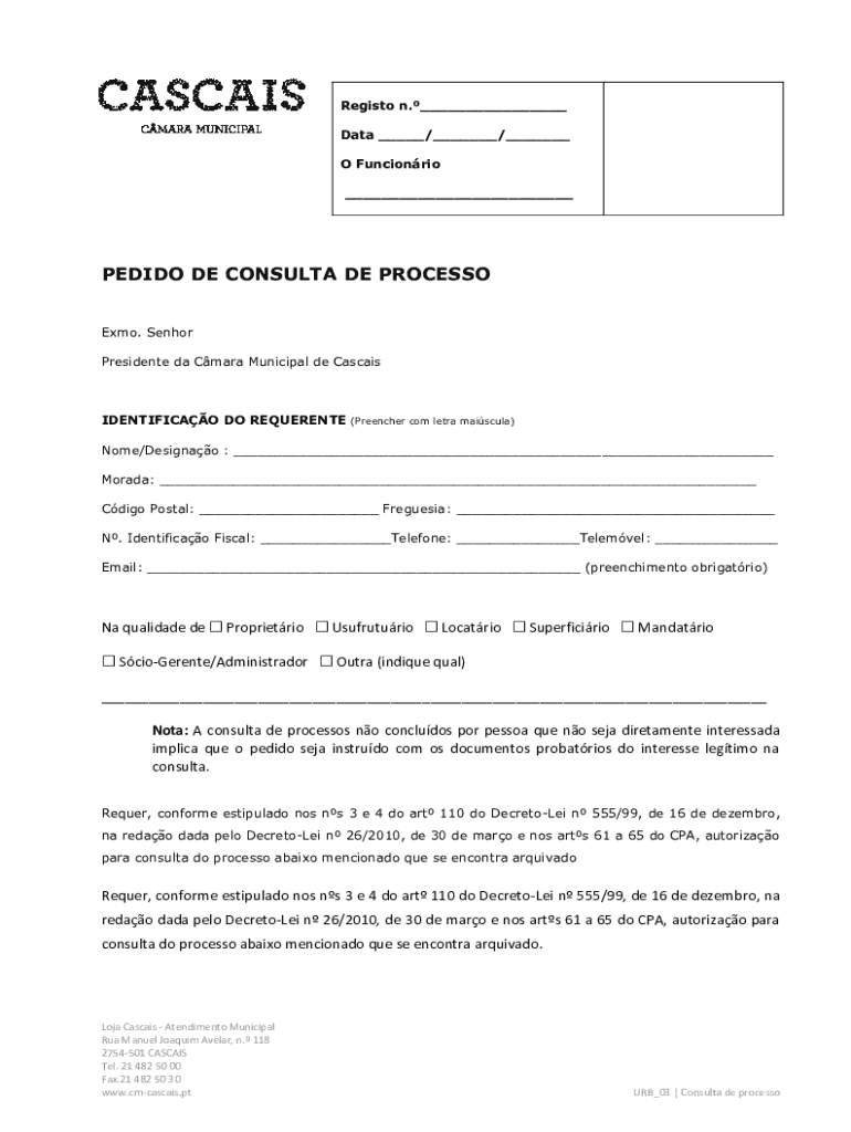 President the Clara Municipal de CascaisIDENTIFICAO DO REFERENCE(Preacher com Petra muscular)Nome/Design :