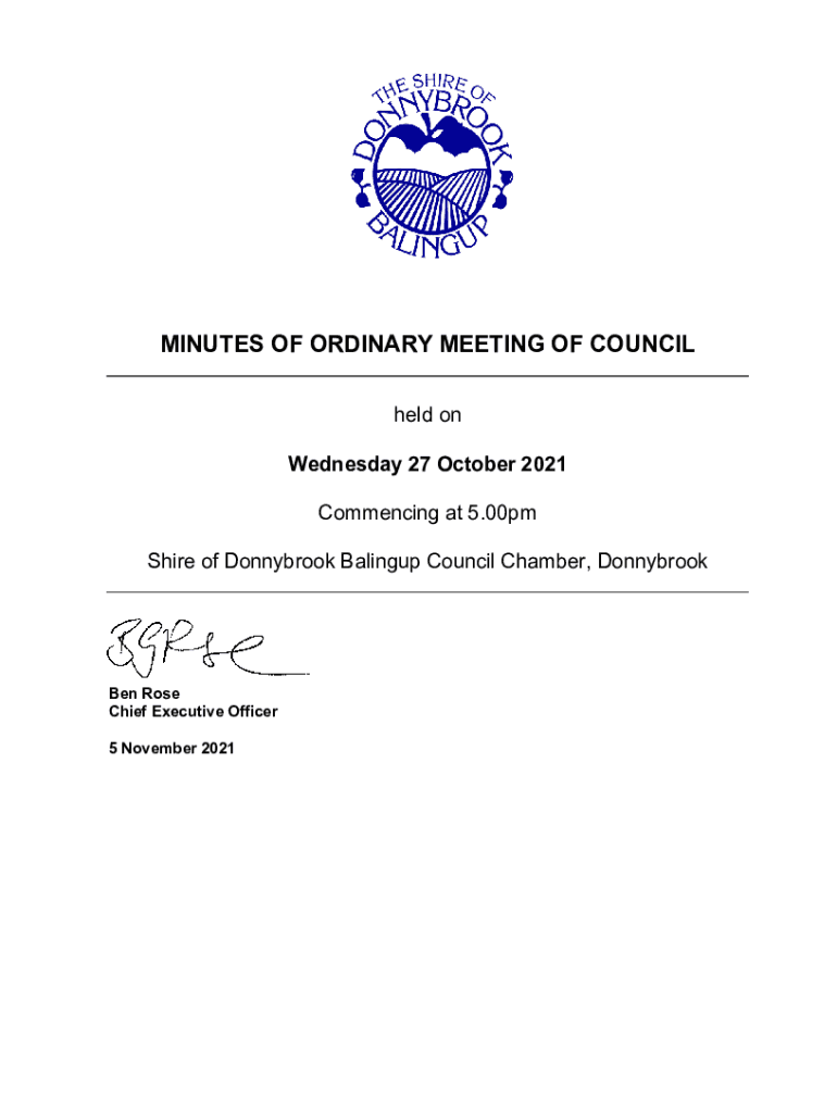 MINUTES OF ORDINARY MEETING OF COUNCIL held on Wednesday 27 October 2021 Commencing at 5.00pm Shire of Donnybrook Baling up Council Chamber, Donnybrook Ben Rose Chief Executive Officer 5 November