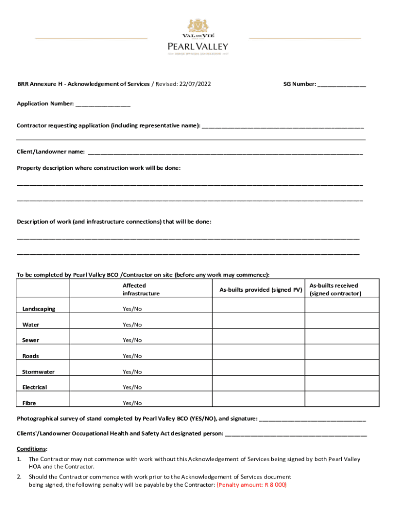 Get the free BRR Annexure H - Acknowledgment of Services
