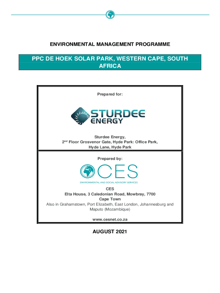 ENVIRONMENTAL MANAGEMENT PROGRAMMED DE HOOK SOLAR PARK, WESTERN CAPE, SOUTH