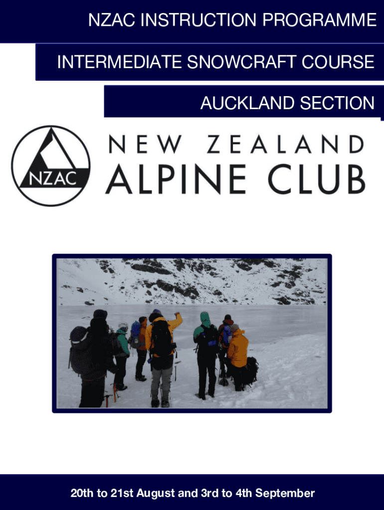 ANZAC INSTRUCTION Program INTERMEDIATE SNOWDRIFT COURSE AUCKLAND SECTION20th to 21st August and 3rd to 4th SeptemberNZAC Intermediate Snow craft CourseLOCATION: Harappa, Mt Rupert ACCOMMODATION: ANZAC