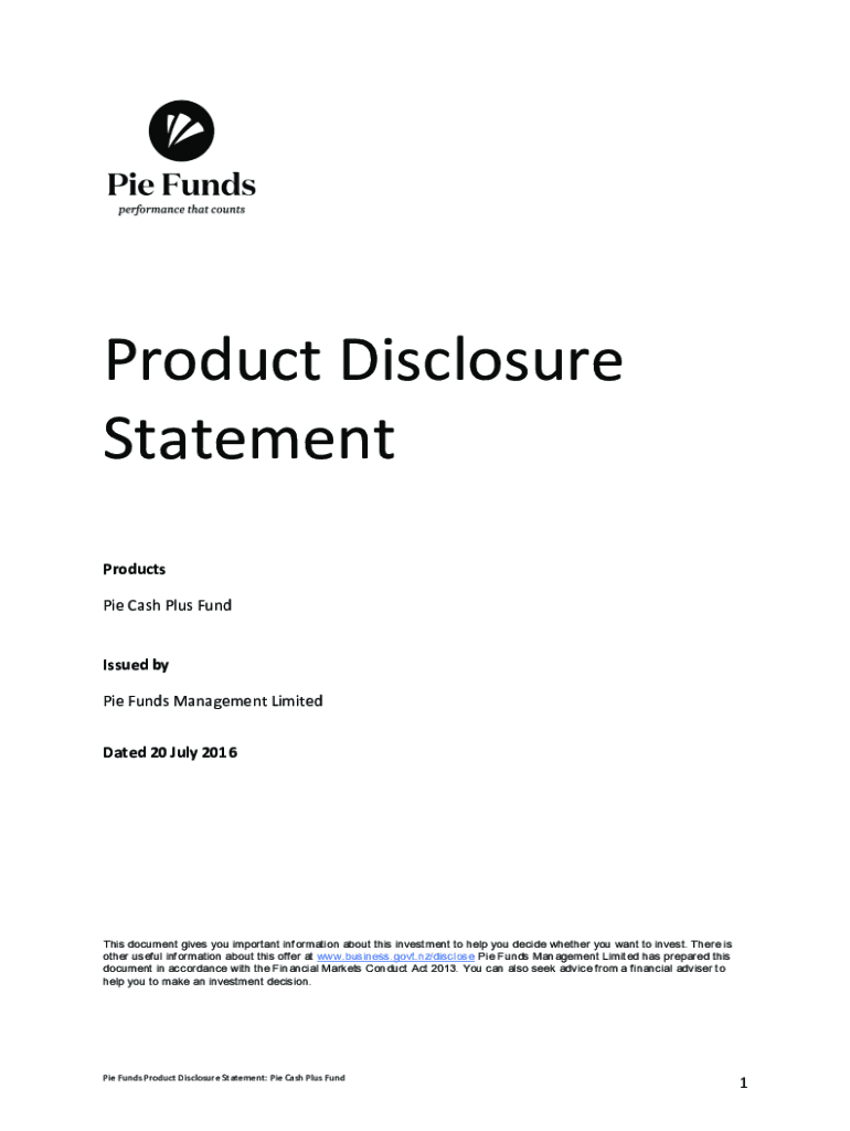 Product Disclosure Statement Products Pie Cash Plus Undisputed by Pie Funds Management Limited Dated 20 July 2016This document gives you important information about this investment to help you decide