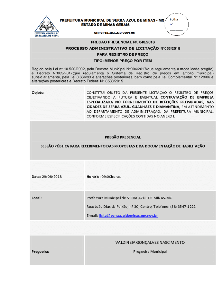 Region plea Lei n 10.520/2002, polo Secret Municipal N004/2017(Que regalement