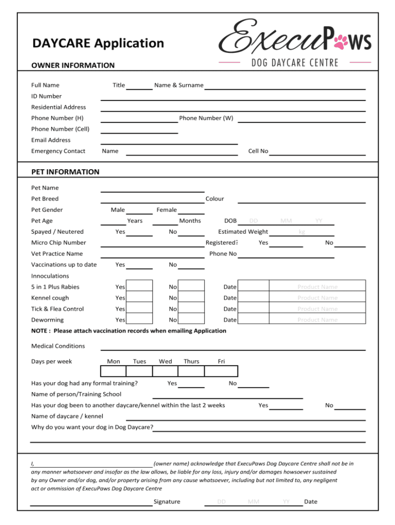 How to fill out daycare and boarding contract