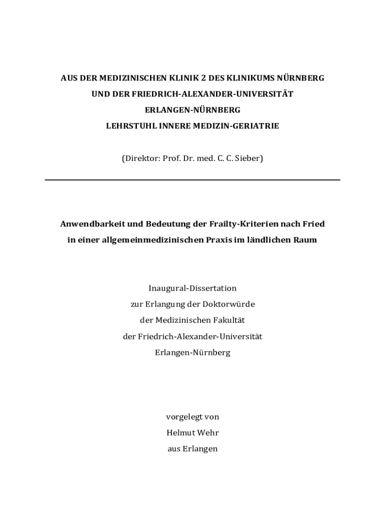 AUSDERMEDIZINISCHENKLINIK2DESKLINIKUMSNRNBERG UNDDERFRIEDRICHALEXANDERUNIVERSITT ERLANGENNRNBERG LEHRSTUHLINNEREMEDIZINGERIATRIE (Director:Prof. Dr.med.C.C. Bieber) AnwendbarkeitundBedeutungderFrailtyKriteriennachFried