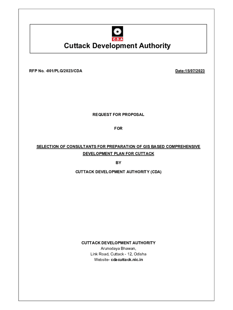 Cuttack Development Authority RFP No. 001/PLG/2023/Gradate:15/07/2023REQUEST FOR PROPOSAL