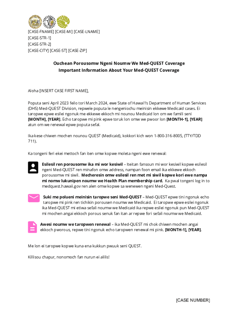 Important Information About Your Request CoverageAloha [INSERT CASE FIRST