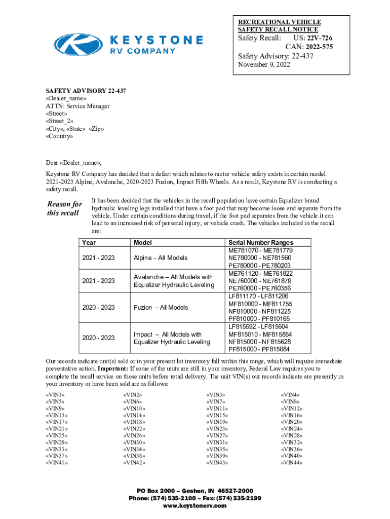 Get the free 22-437 Equalizer Jack pads Recall Dealer Letter