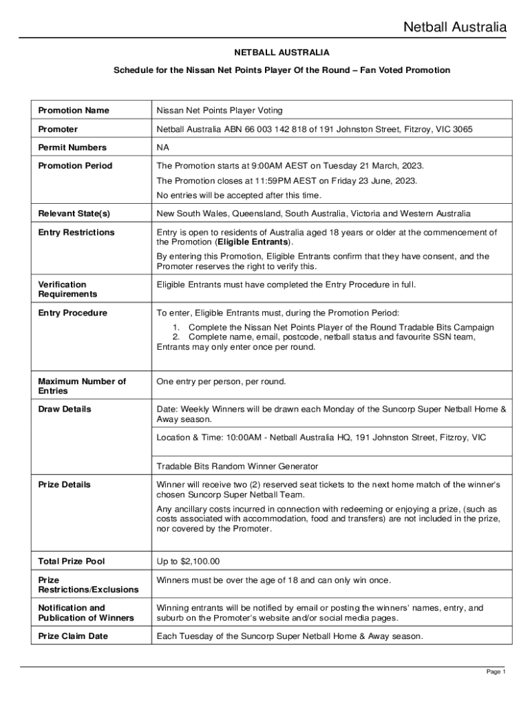 Schedule for the Nissan Net Points Player Of the Round Fan Voted PromotionPromotion Name Nissan Net Points Player VotingPromoterNetball Australia ABN 66 003 142 818 of 191 Johnston