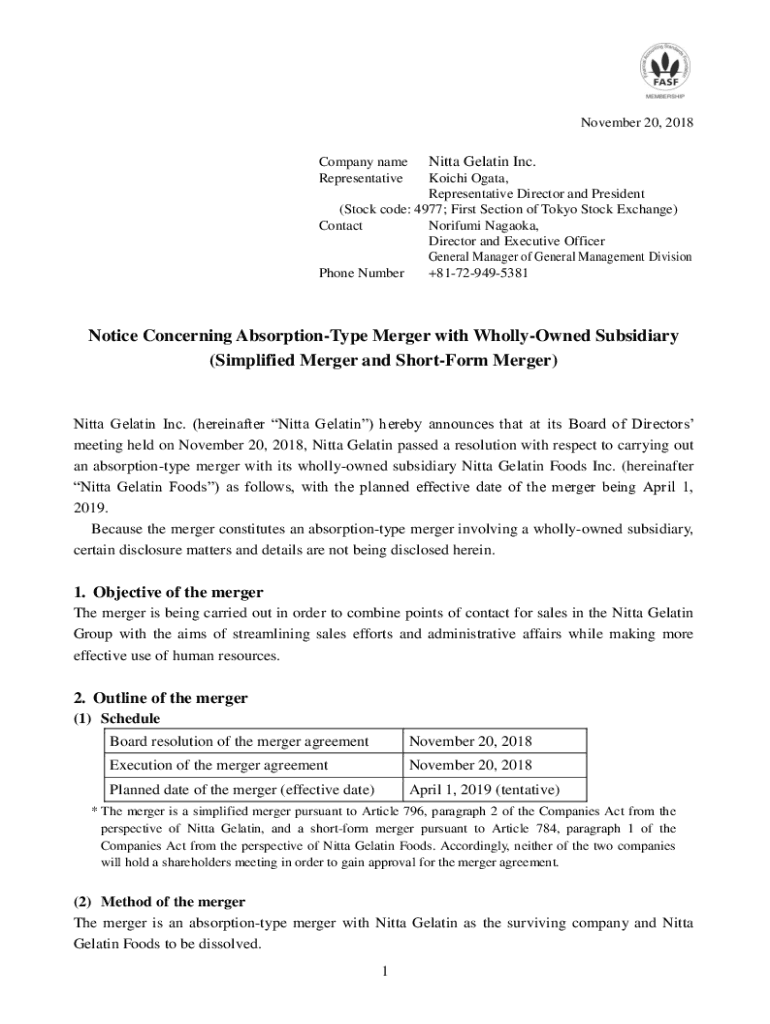 RepresentativeNitta Gelatin Inc. Chichi Data,