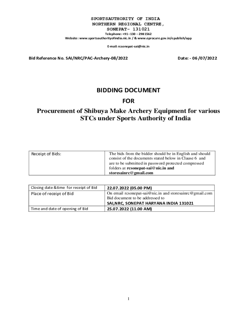 Website: www.sportsauthorityofindia.nic.in / & www.eprocure.gov.in/epublish/app