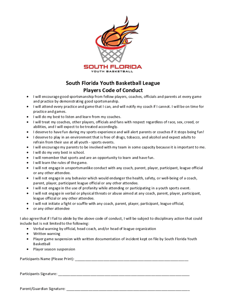 Get the free South Florida Youth Basketball League Players Code of Conduct