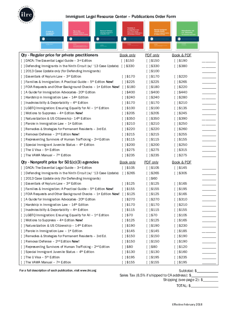 Get the free Immigrant Legal Resource Center Publications Order Form ... - ilrc