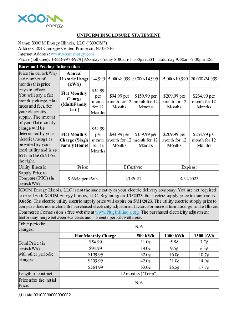 UNIFORM DISCLOSURE STATEMENT Name: ROOM Energy Illinois, LLC (\” ROOM\”) Address: 804 Carnegie Center, Princeton, NJ 08540 Internet Address: www.xoomenergy.com Phone (toll-free): 18889978979 |