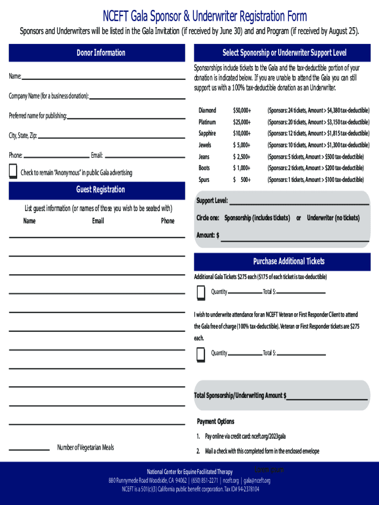 Get the free NCEFT Gala Sponsor & Underwriter Registration Form