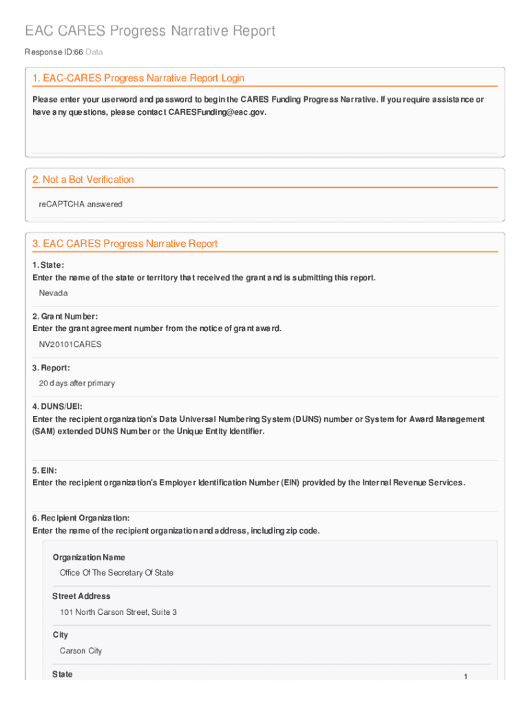 EAC CARES Progress Narrative Report Response ID:66 Data1. DAYCARES Progress Narrative Report Login Please enter your user word and password to begin the CARES Funding Progress Narrative. If you require