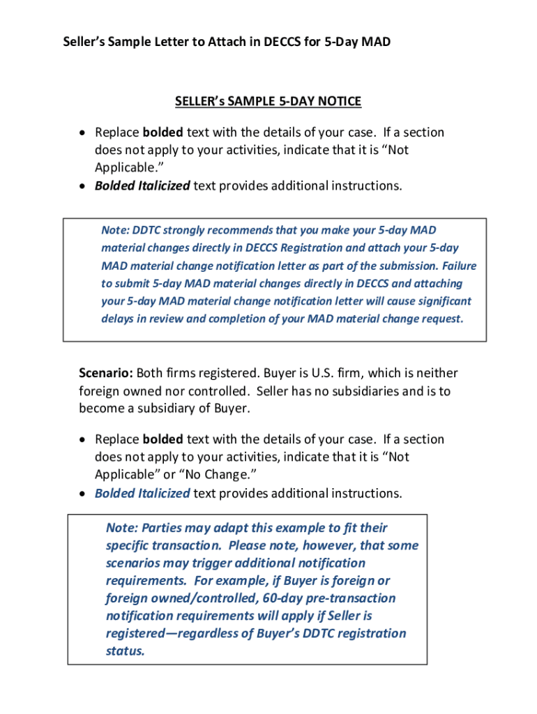 Get the free Seller's Sample Letter to Attach in DECCS for 5-Day MAD SELLER's ...