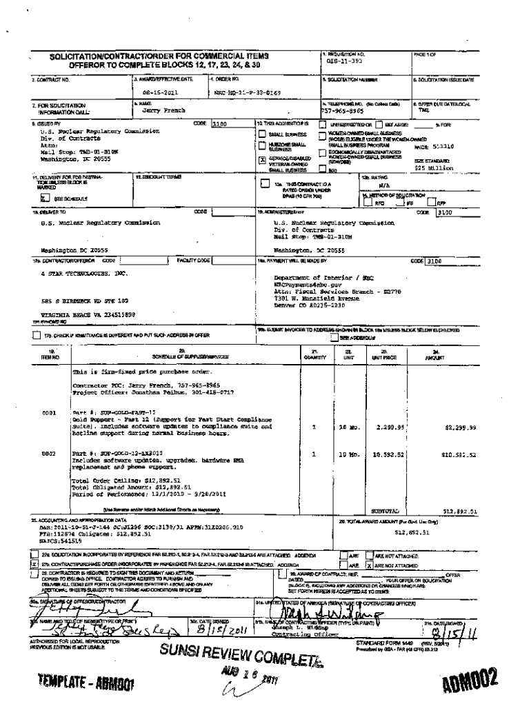 SQLICrFATIONWCONTRACTIORDER FOR COMMERCIAL ITEMS\” I. Requisition NO.PMIO5.SOLUTE\'TIOIF4